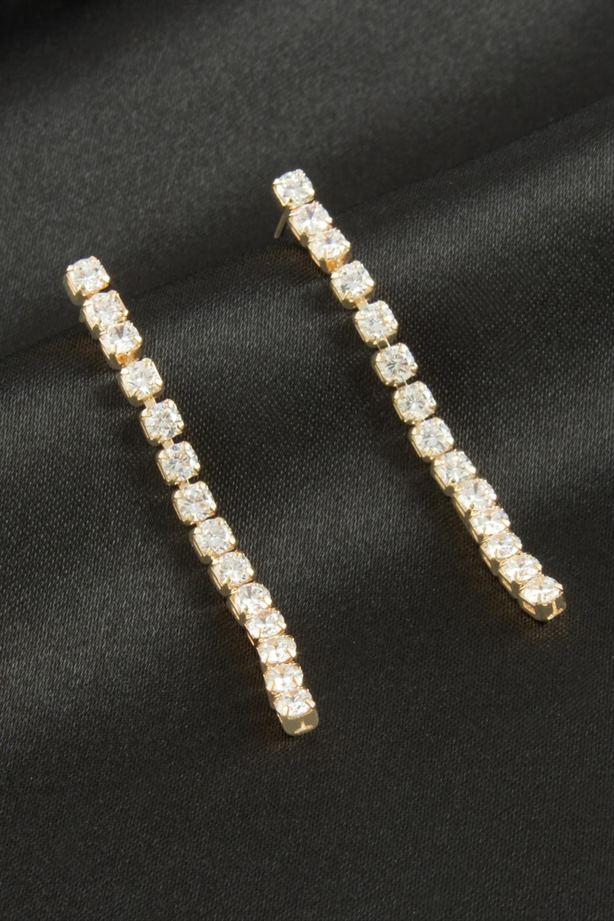 Yuvarlak Zirkon Taşlı Lüks Küpe