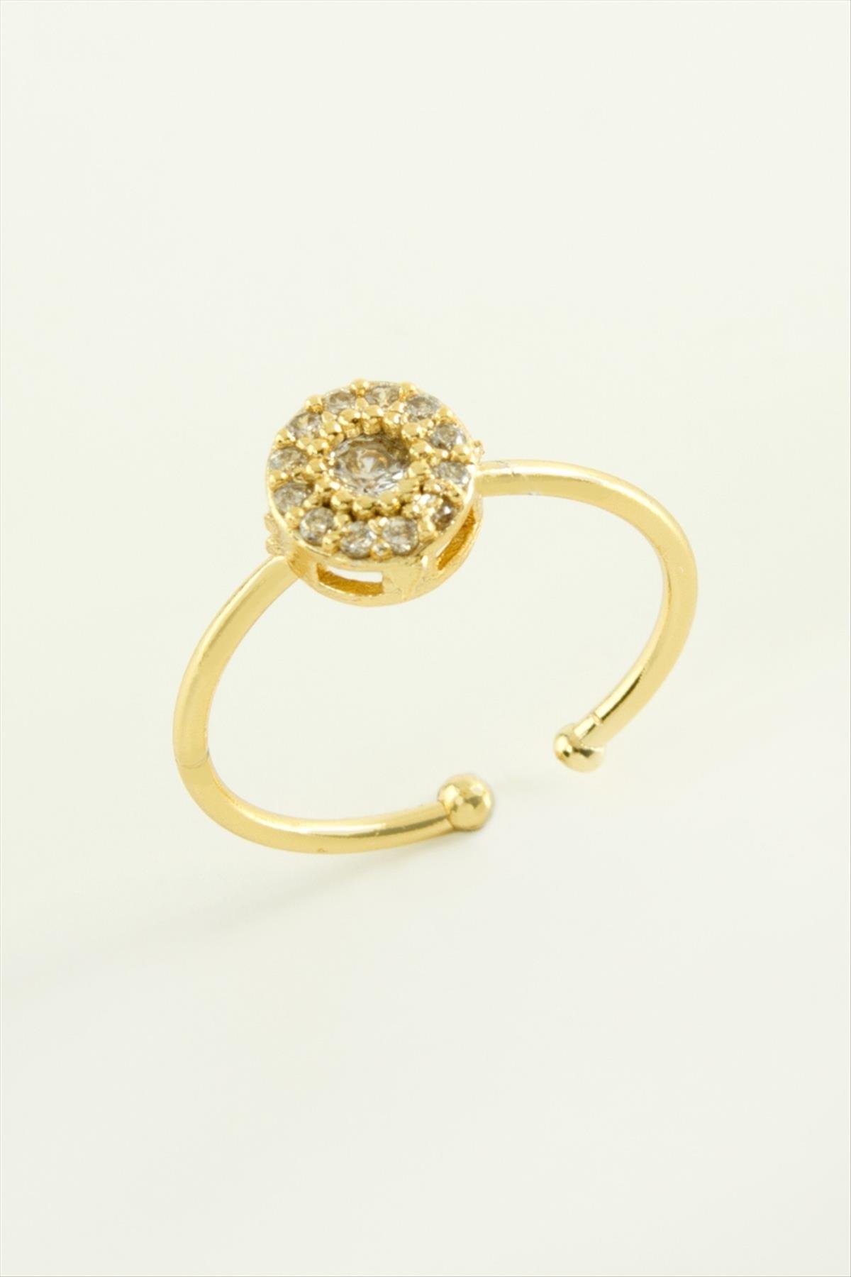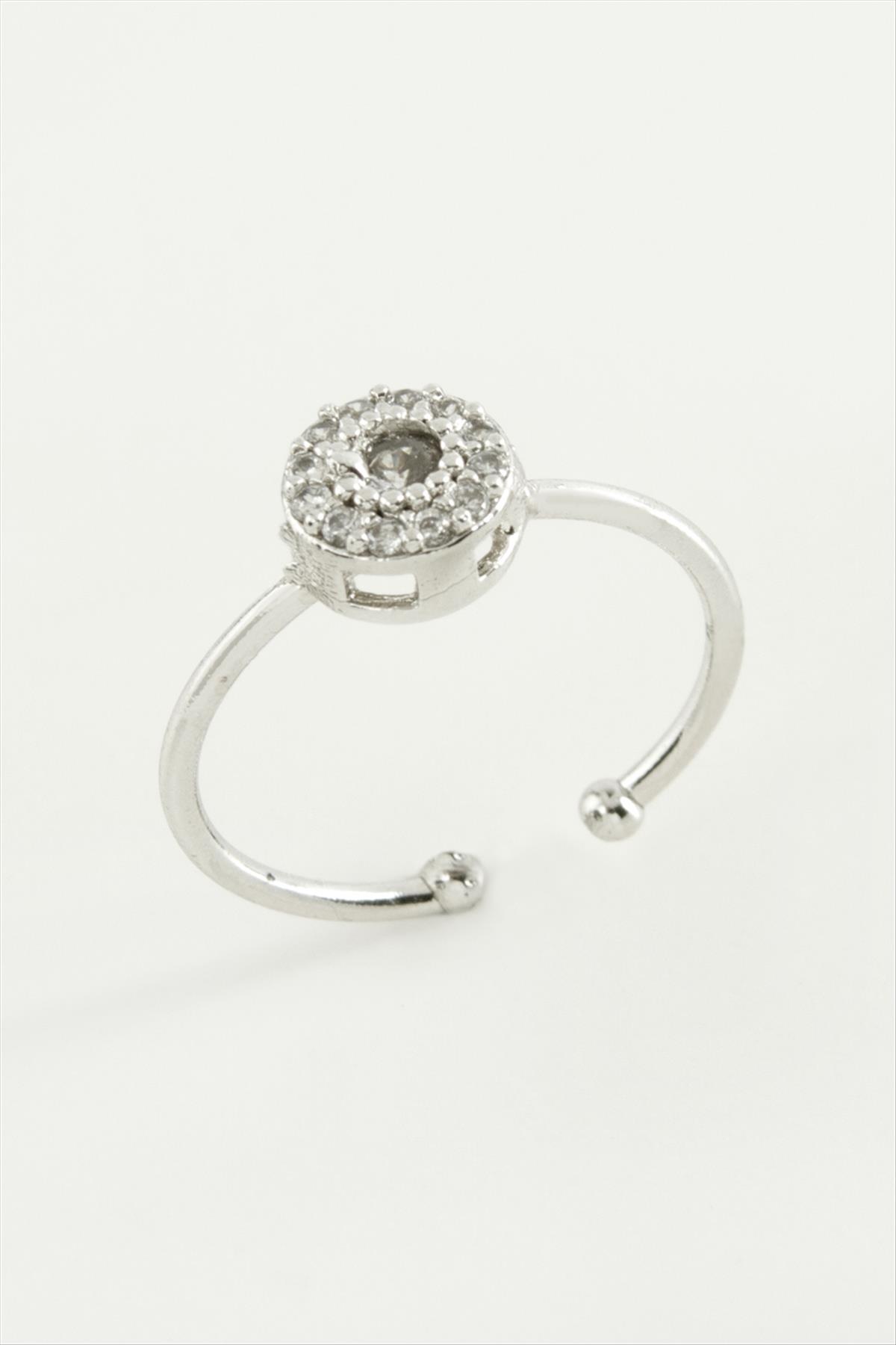 Yuvarlak Zirkon Taşlı Yüzük-Gümüş Rengi