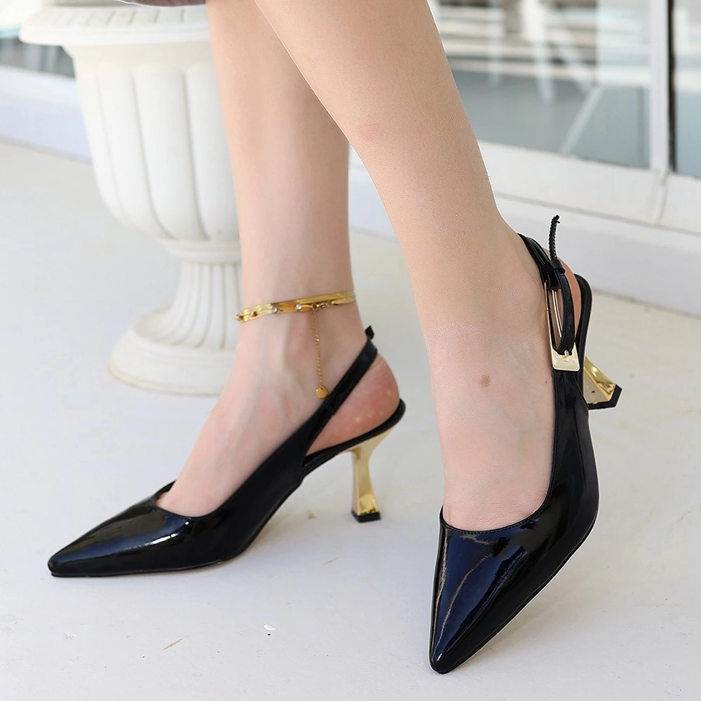 Zalin Siyah Rugan Topuklu Ayakkabı (Numara: 36)