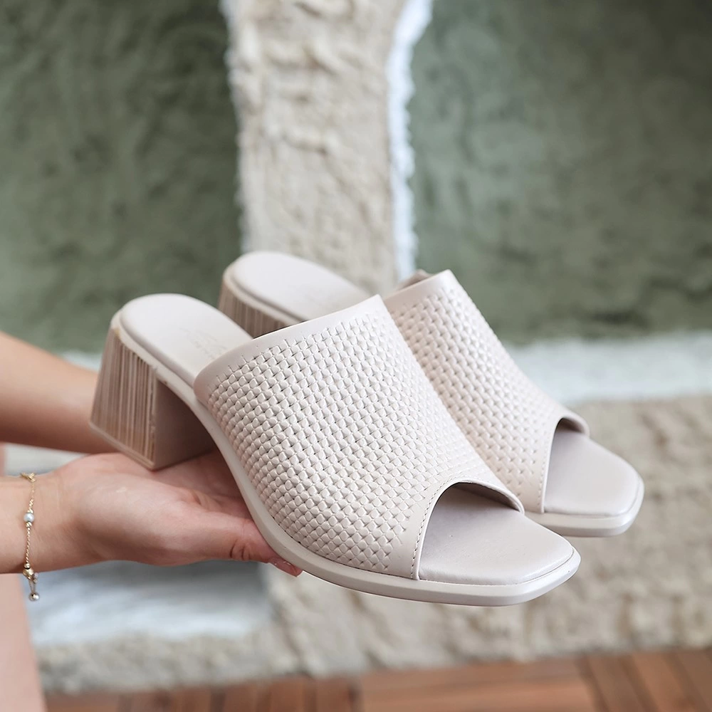 Zanna Bej Cilt Topuklu Terlik (Numara: 36)