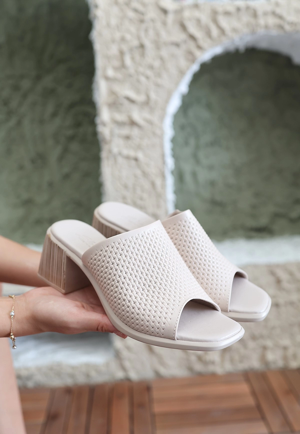 Zanna Bej Cilt Topuklu Terlik (Numara: 39)