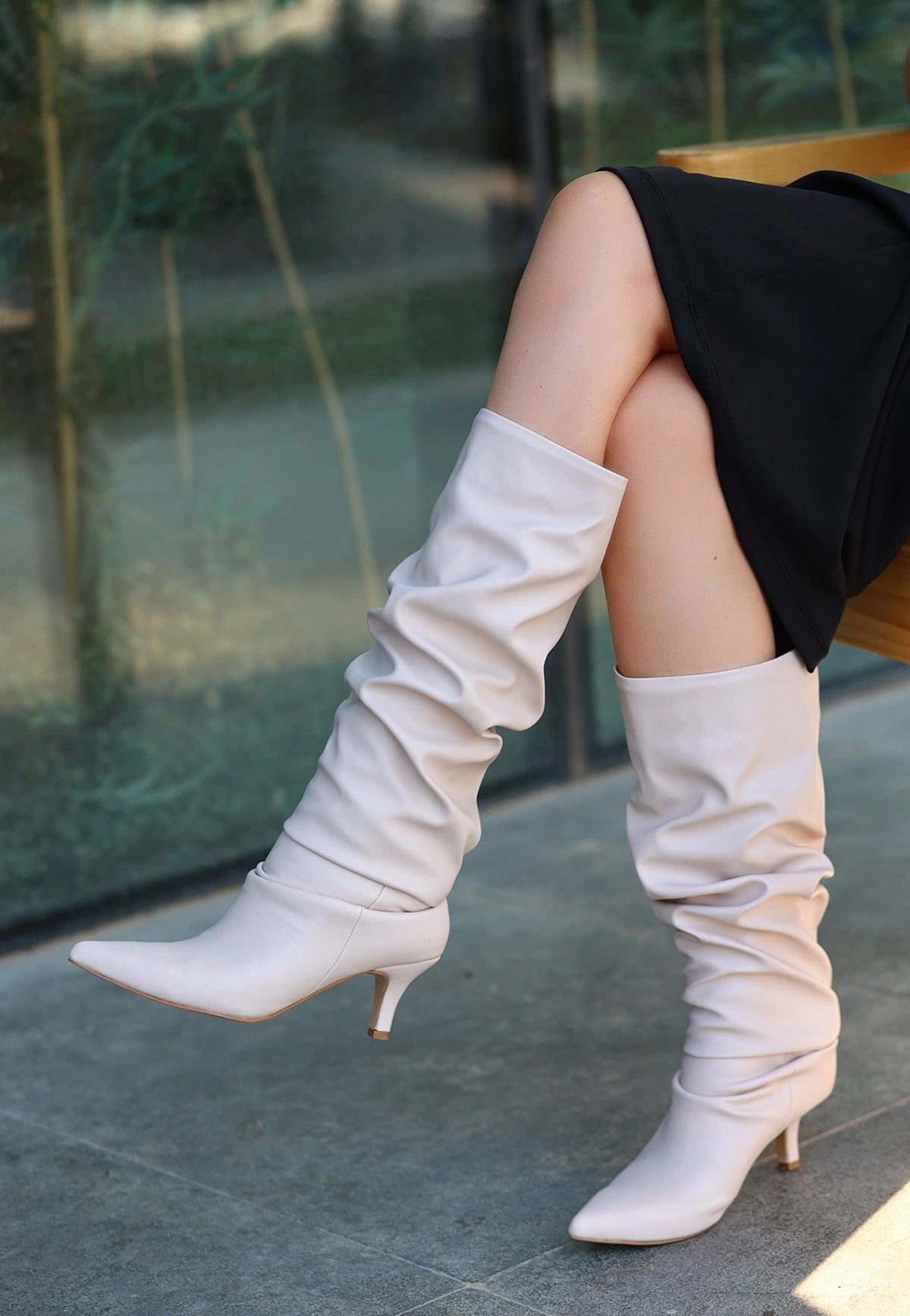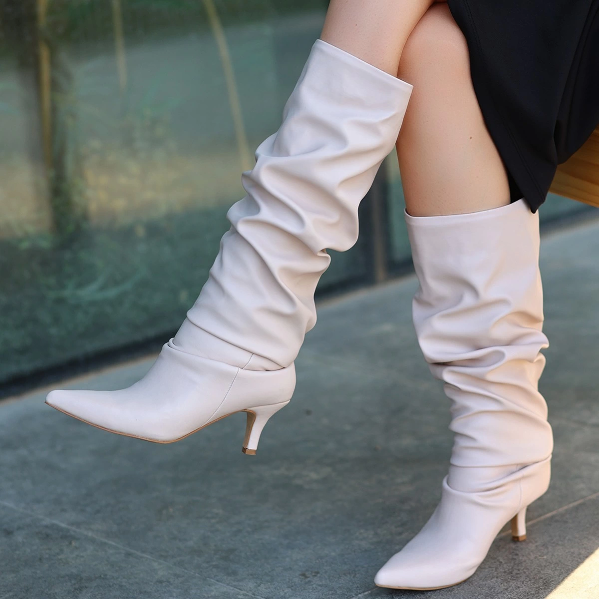 Detay : Topuklu Diz Altı Körüklü Çizme