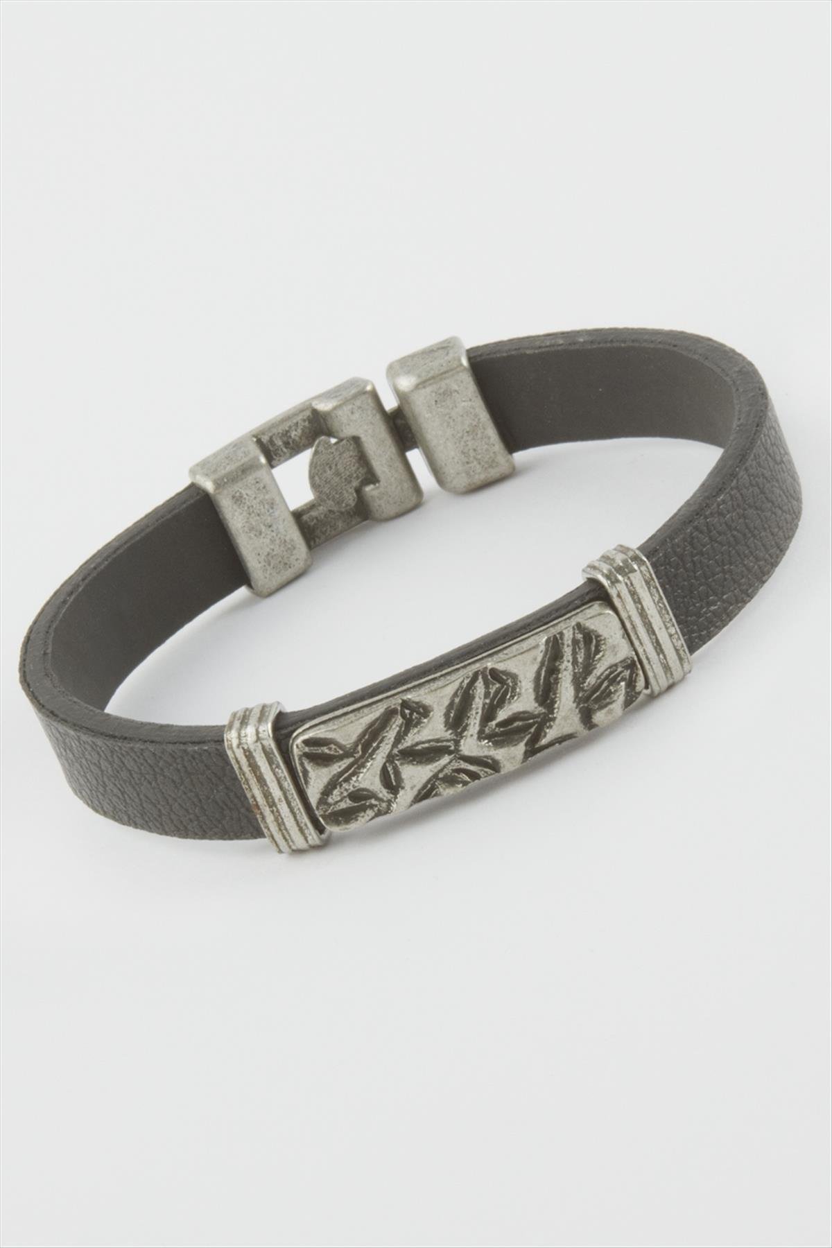 Zemin Desenli Suni Deri Bileklik-Siyah