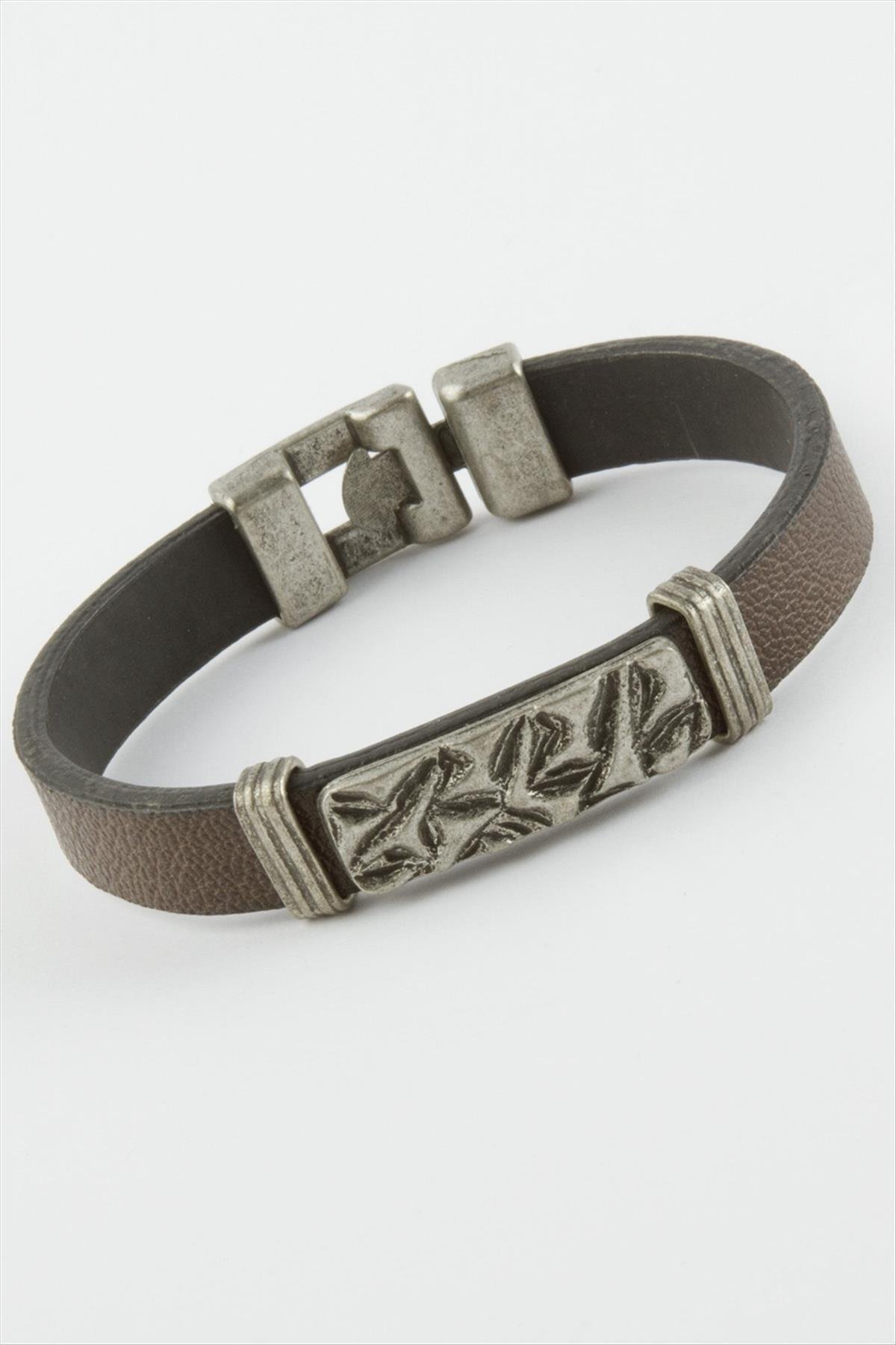Zikzak Desenli Suni Deri Bileklik-Kahverengi