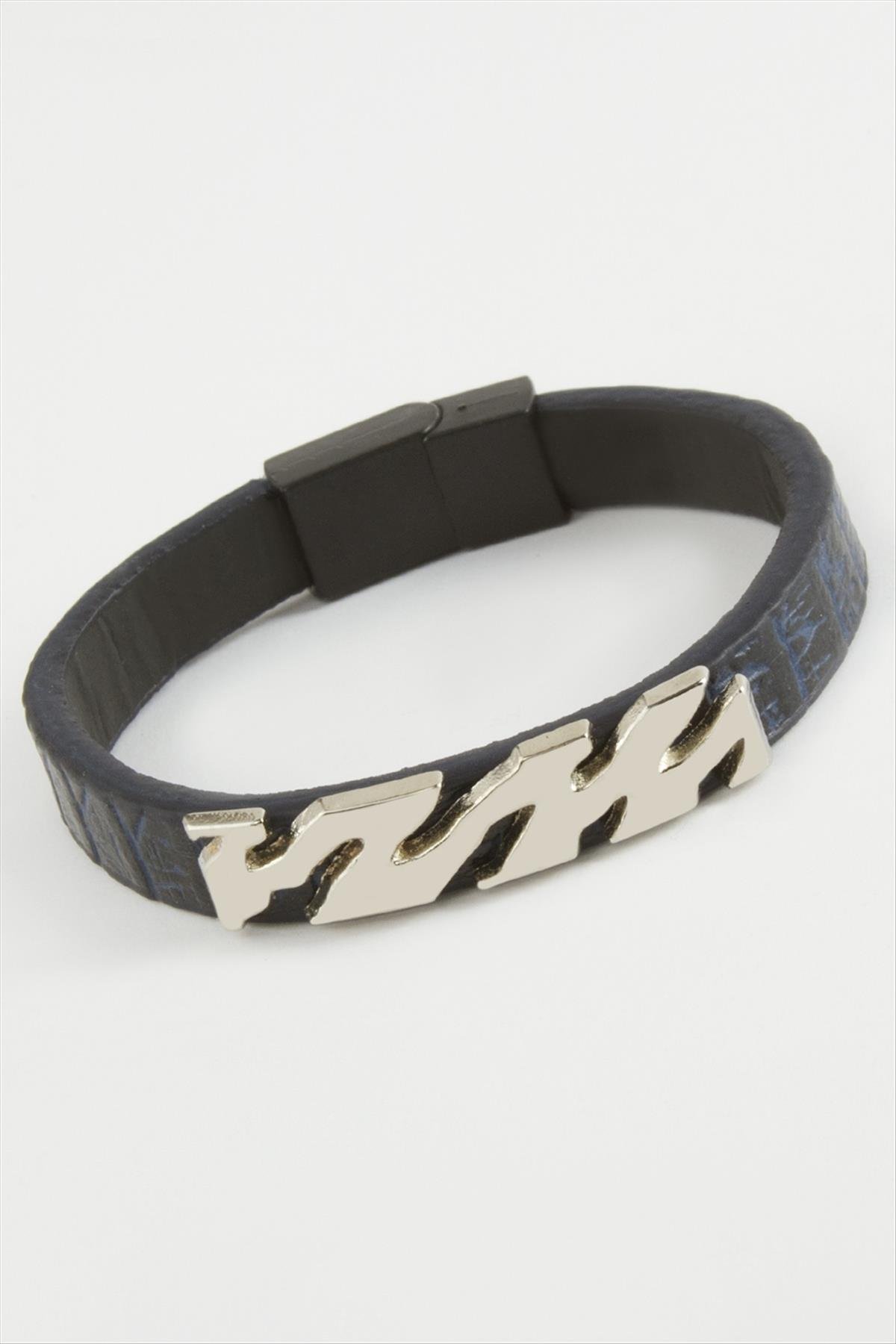 Zikzak Kaliteli Mıknatıslı Suni Deri Bileklik-Lacivert