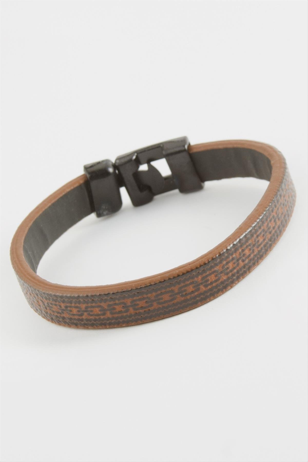 Zincir Desenli Kaliteli Suni Deri Bileklik-Kahverengi