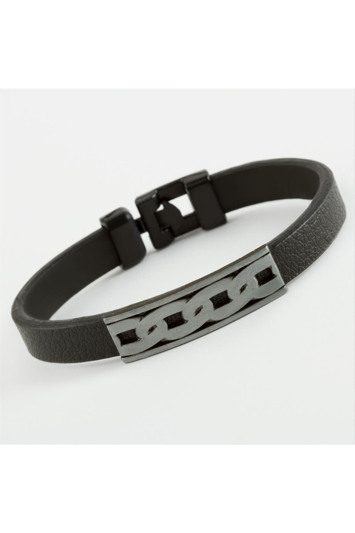Zincir Desenli Kaliteli Suni Deri Bileklik-Siyah
