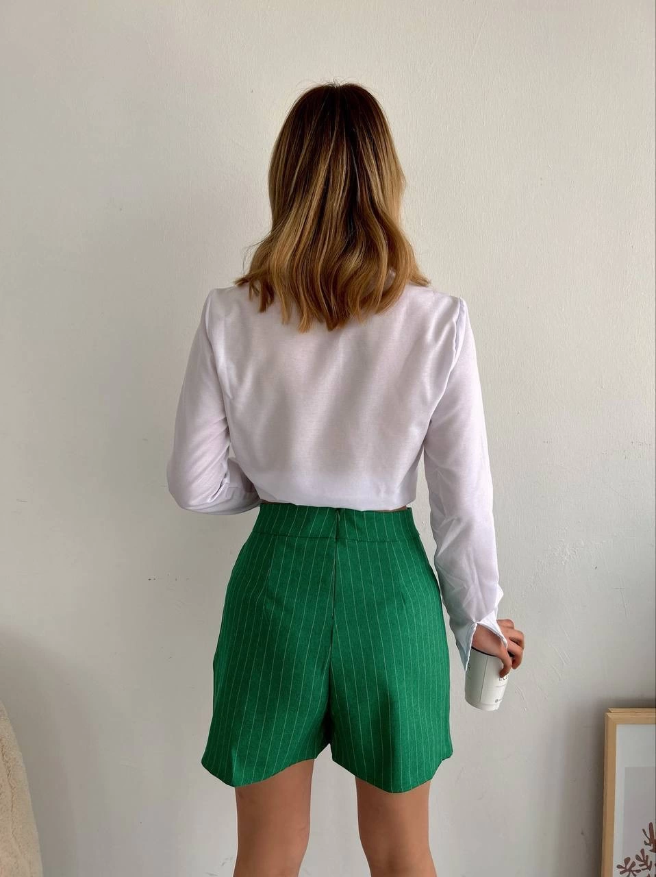 Zincir detaylı çizgili şort etek Yeşil (Beden: L)