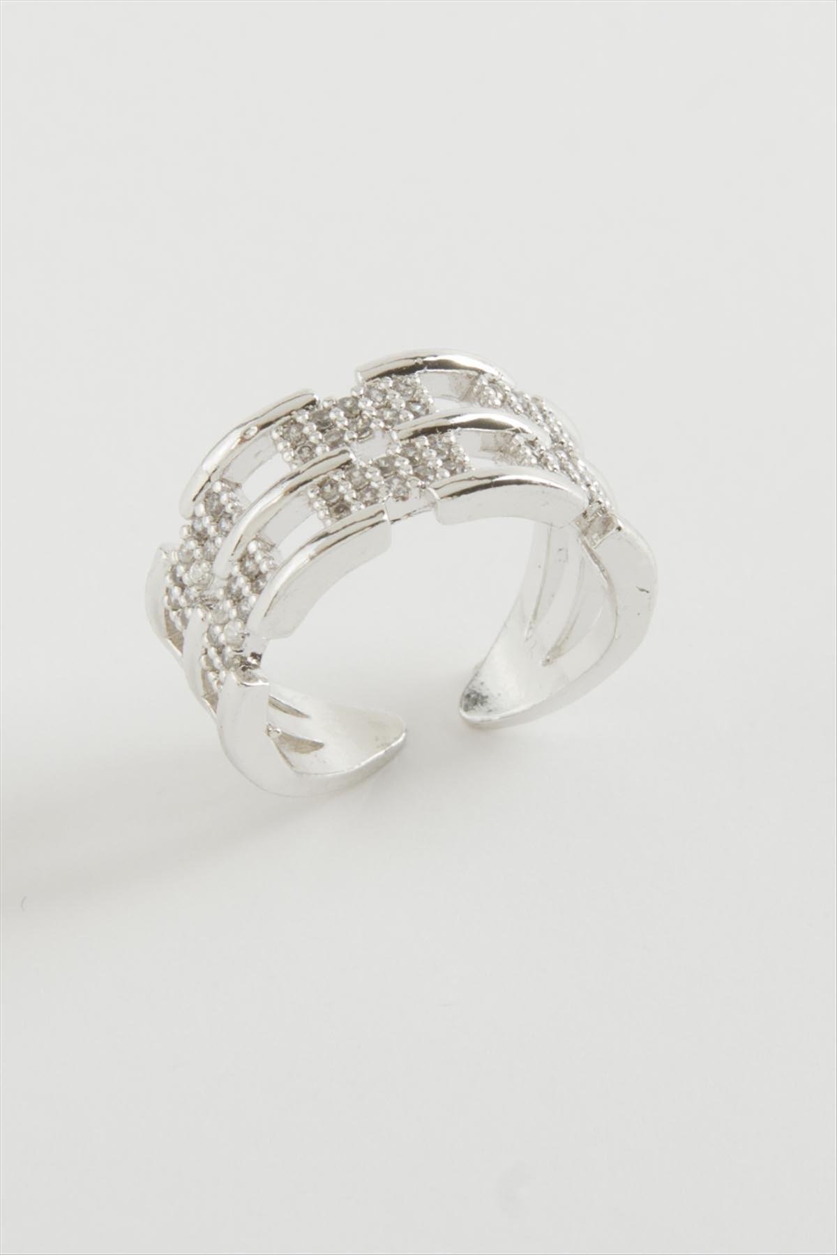 Zincir Şekilli Zirkon Taşlı Yüzük-Gümüş Rengi