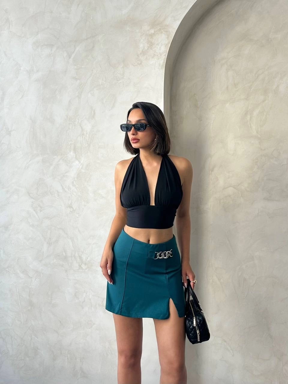 Zincirli Şort Etek Petrol Yeşili S24676 (Beden: L)