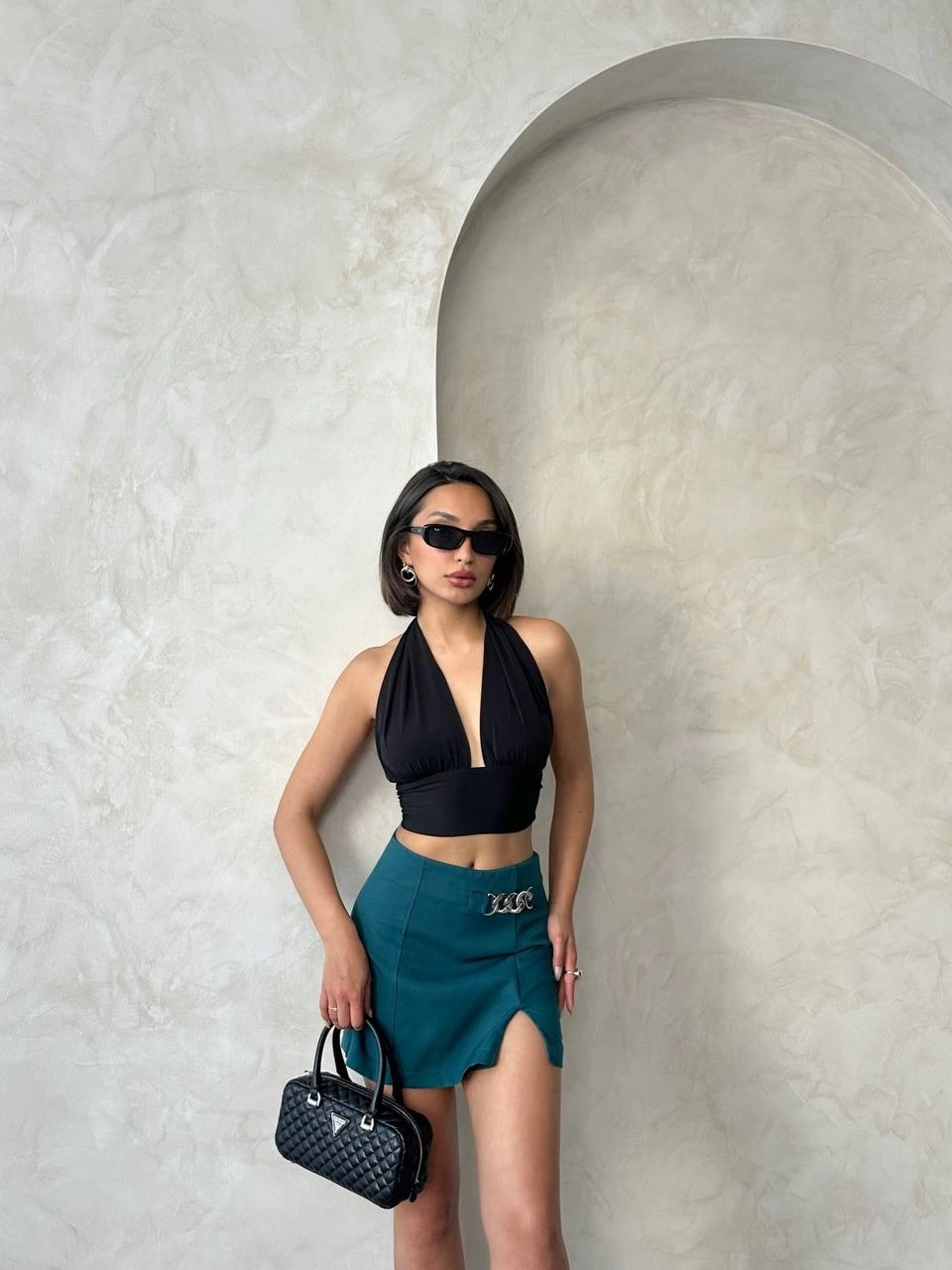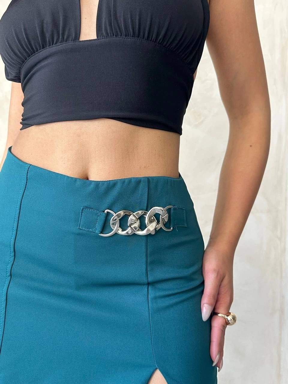 Zincirli şort etek petrol yeşili s24676 (Beden: L)
